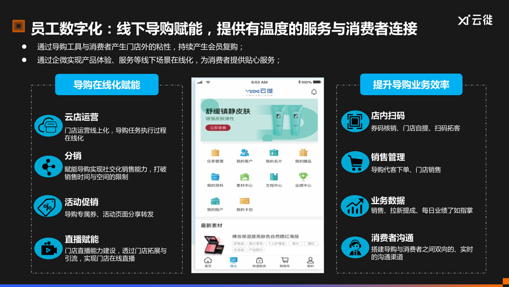 员工数字化:顺利获得数字化工具对导购进行赋能,实现日常业务在线,提升业务效率,让导购为消费者给予有温度的服务与连接。